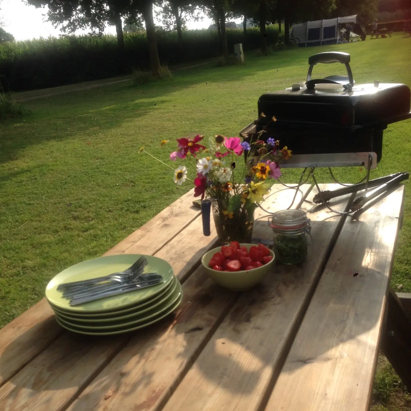 Ja, in de huiskamer staat een houtkachel waardoor het ook bij koud weer een fijne plek is om te zitten.