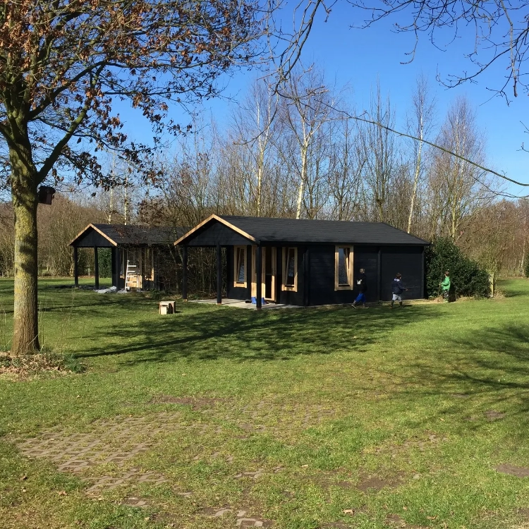 De wood-lodges staan niet ver van ons luxe sanitairgebouw. U kunt hier gratis douchen.